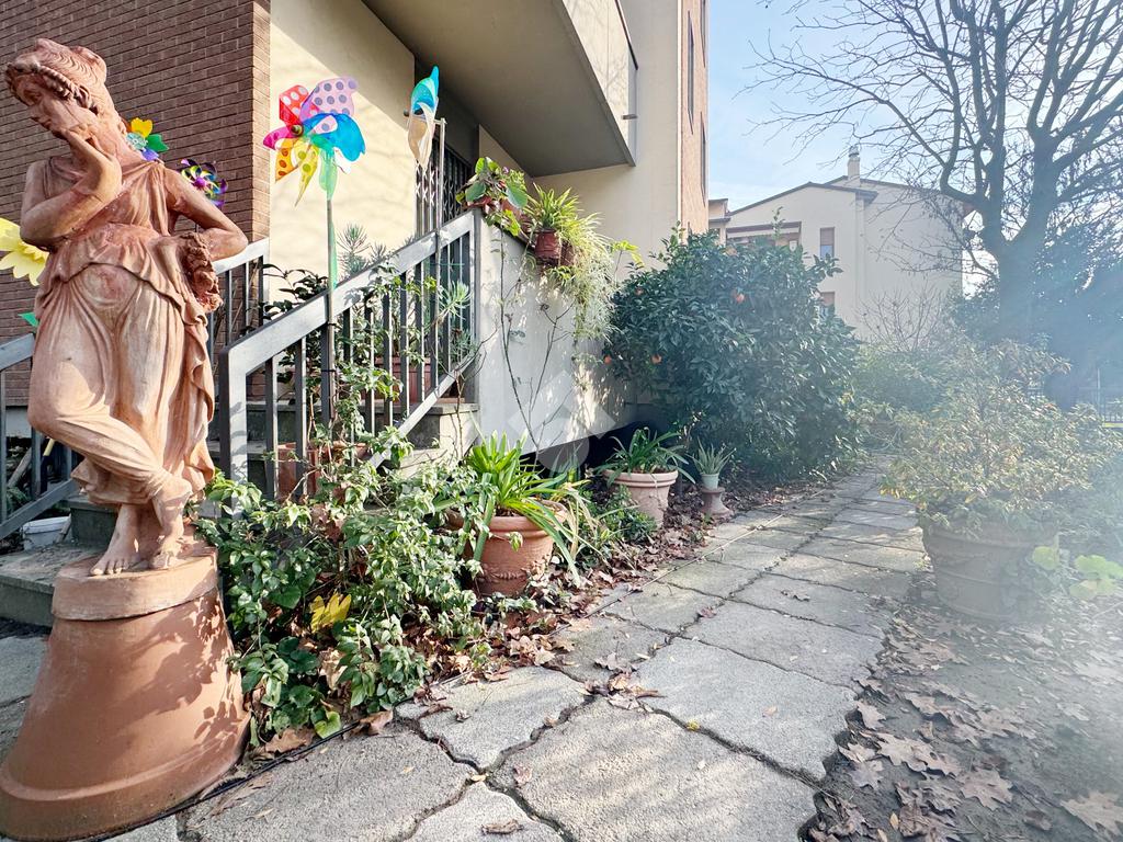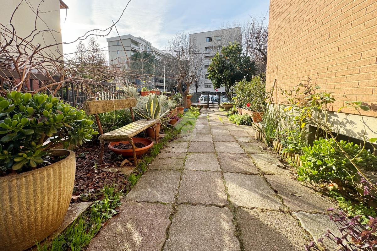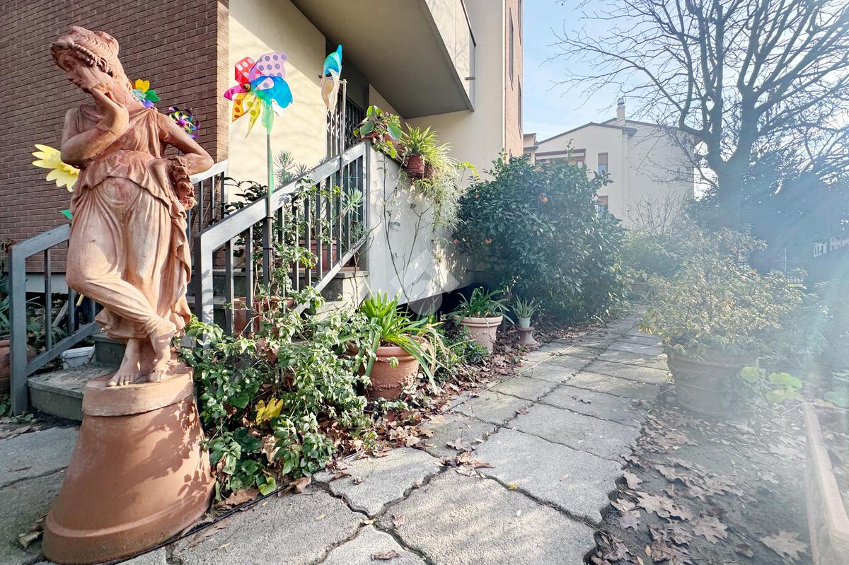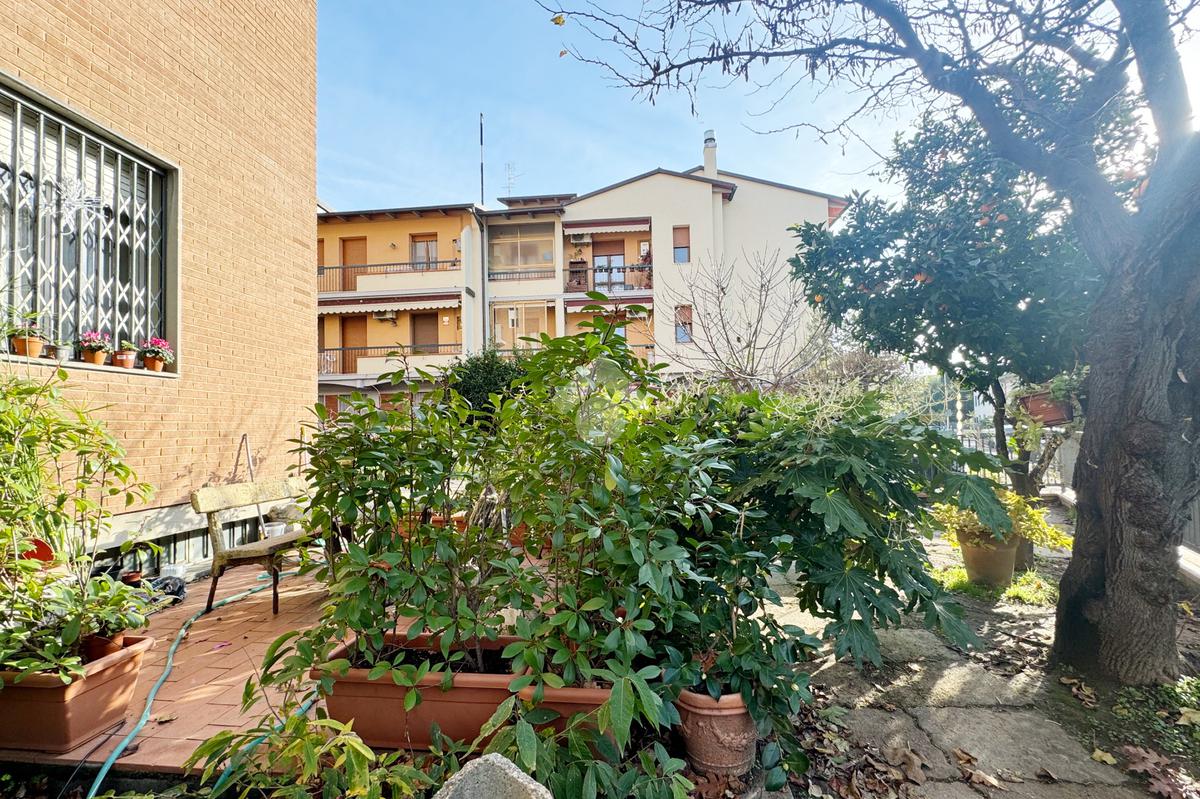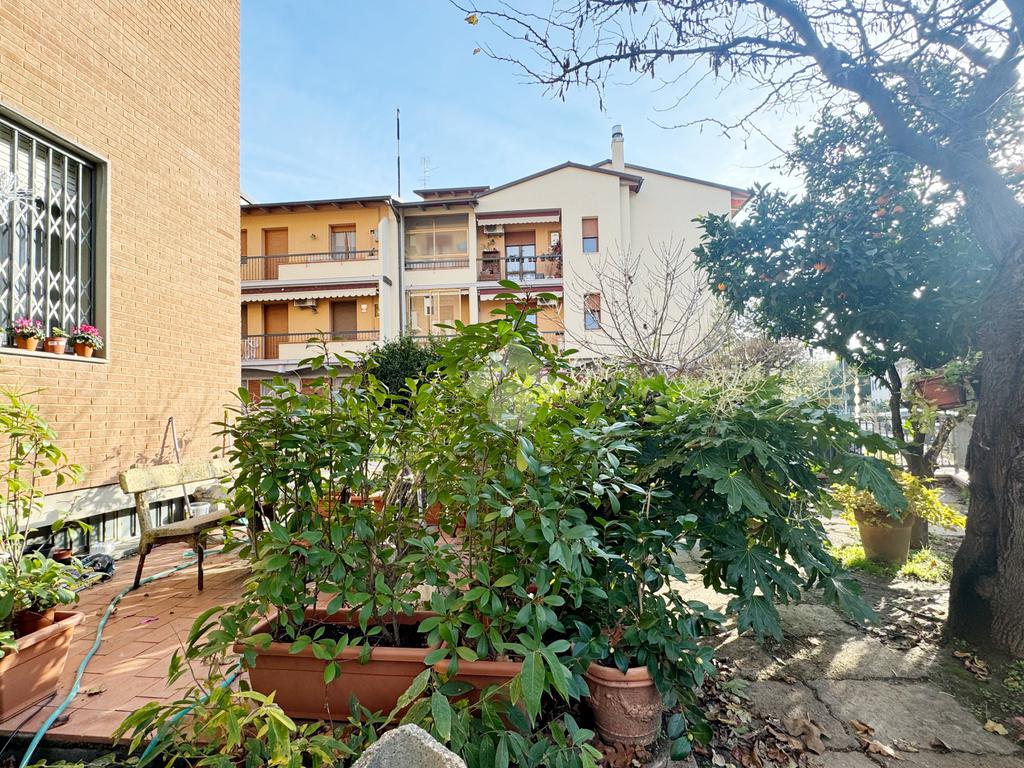 Proponiamo in vendita in zona tranquilla, immersa nel verde ma comodamente vicina ai principali servizi e collegamenti, appartamento di grandi dimensioni caratterizzato da uno splendido giardino privato di circa 200 mq con ingresso indipendente, libero su tre lati e dotato di garage.